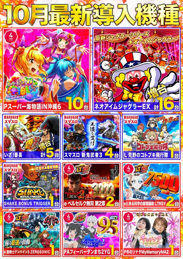 明日はマルハン善通寺店へお越しください!★10月27日(月) 朝9時開店★お客様のご来店お待ちしております♪♪