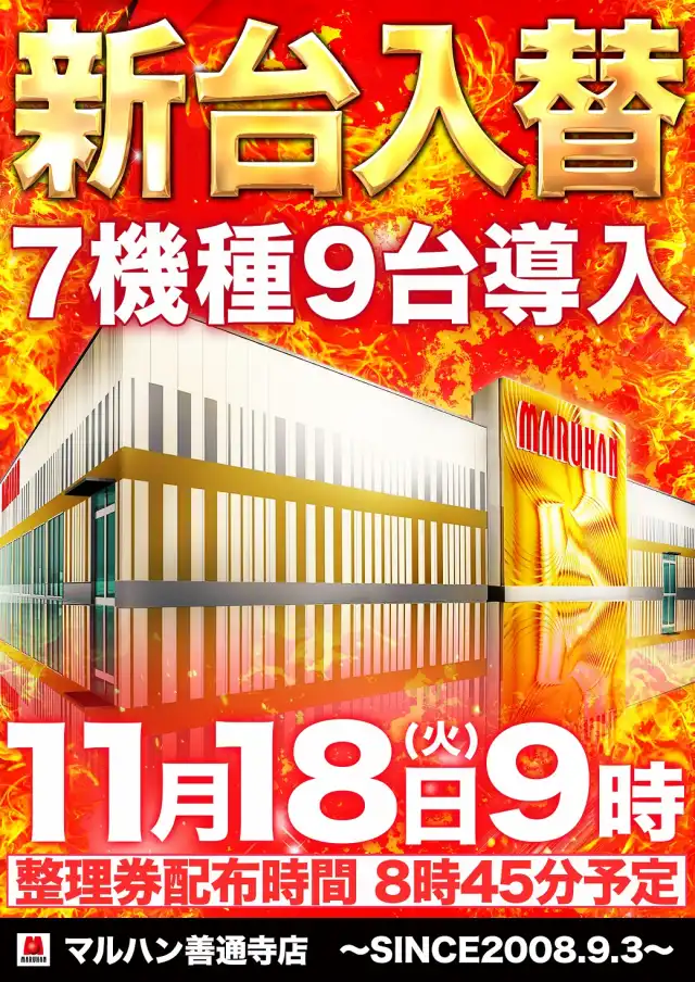明日はマルハン善通寺店へお越しください!★11月17日(月) 朝9時開店★お客様のご来店お待ちしております♪♪