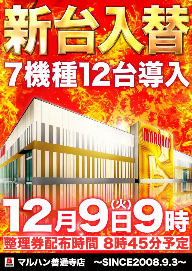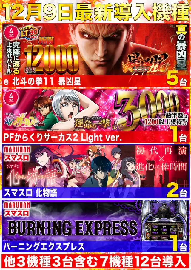 12月9日(火) 新台入替初日 9時オープン !!