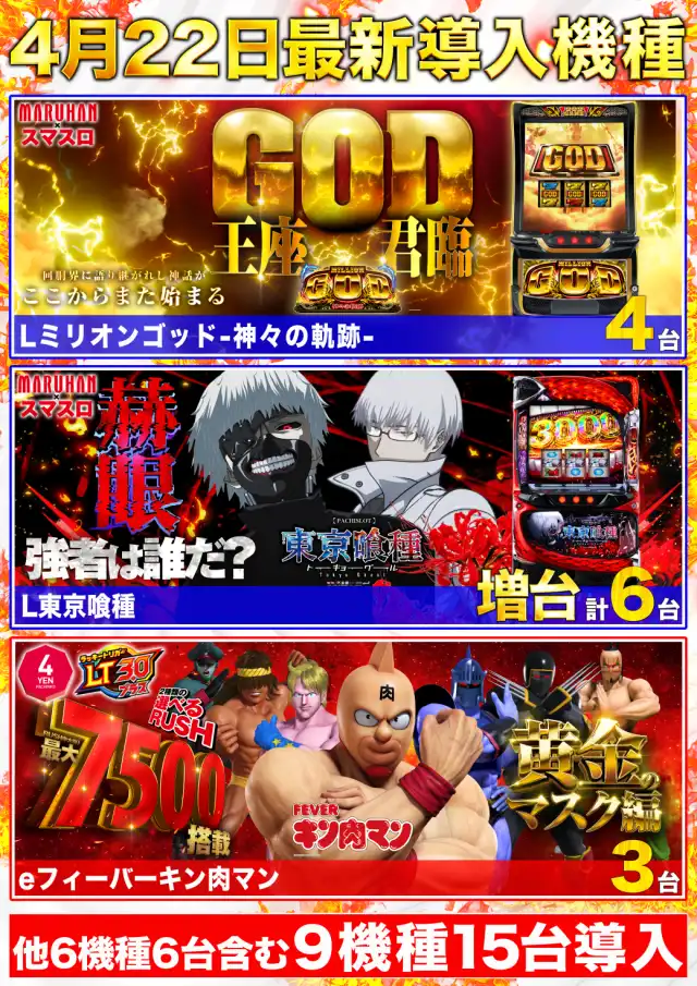 4月22日(水) 新台入替初日 9時オープン !!