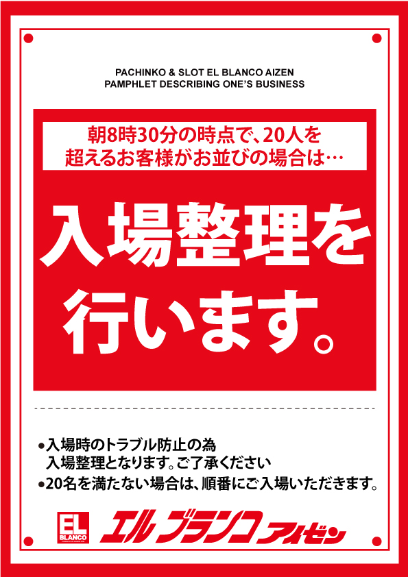 本日9:00~OPEN予定😀 8:30~入場整理開始です💪
