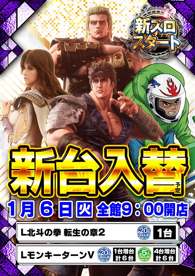 明日1/6(火) ☆新台入替☆ご来店お待ちしております!