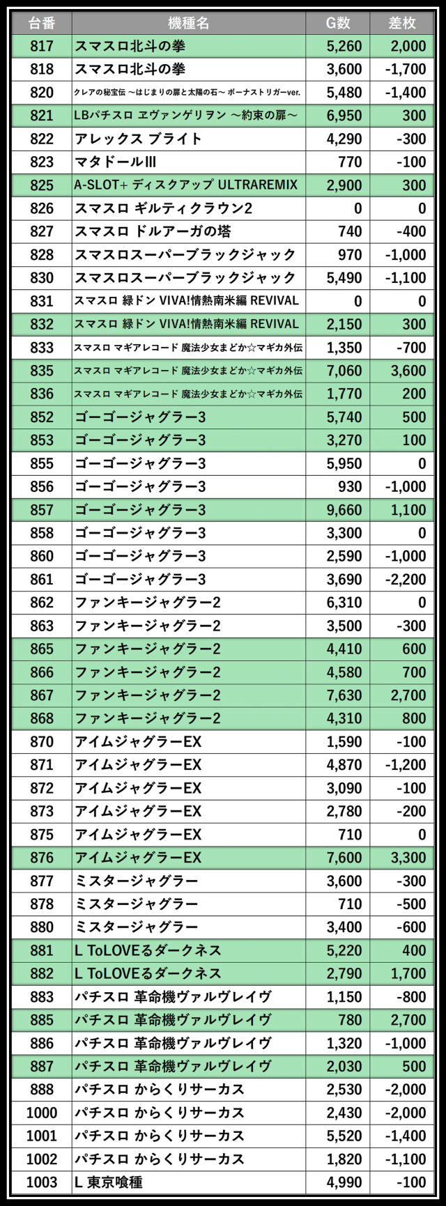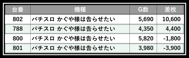 その結果の中から、ぱちタウンが注目すべきポイントを厳選してユーザーにお届け!プレイヤーが楽しんだ一日を下記データにて振り返ってみて欲しい。
