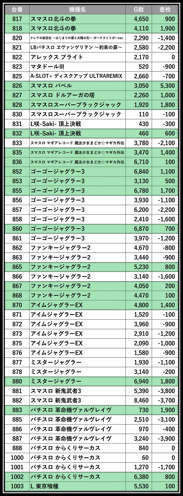 その結果の中から、ぱちタウンが注目すべきポイントを厳選してユーザーにお届け!プレイヤーが楽しんだ一日を下記データにて振り返ってみて欲しい。
