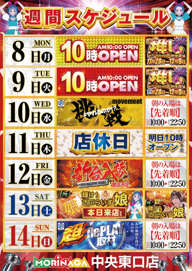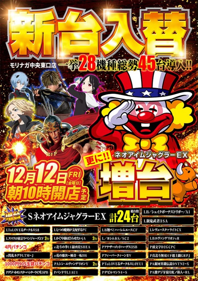 💥明日🎊新台入替🎉一挙28機種45台導入🎉10:00開店予定
