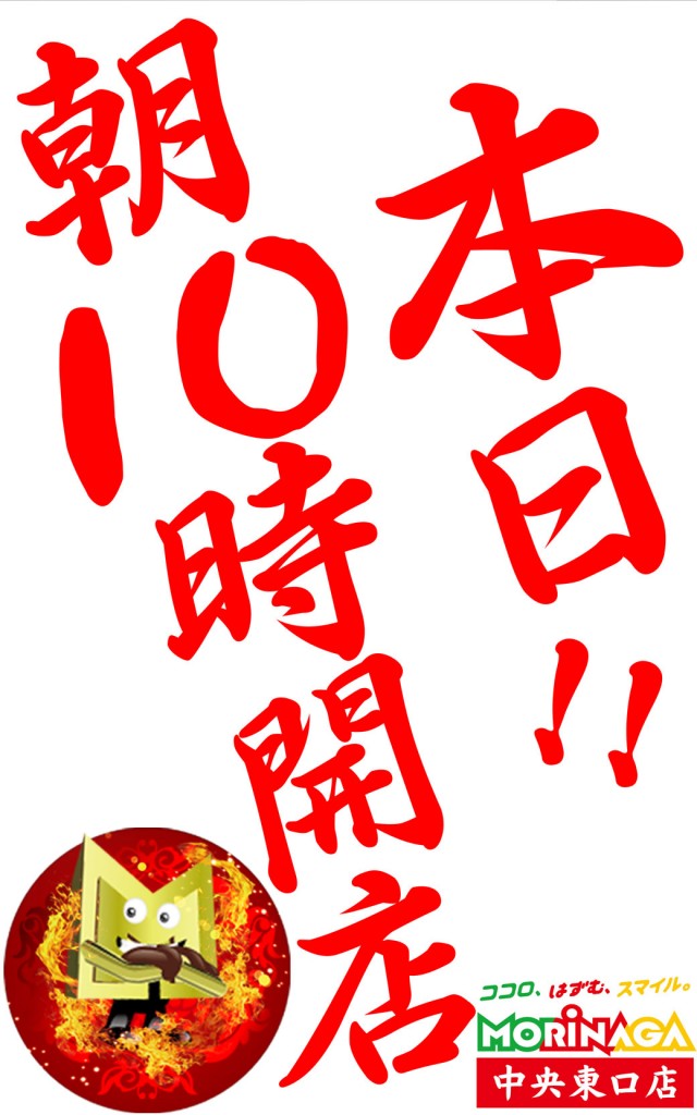 本日、朝10時オープンです!今日はモリナガ中央東口店へ