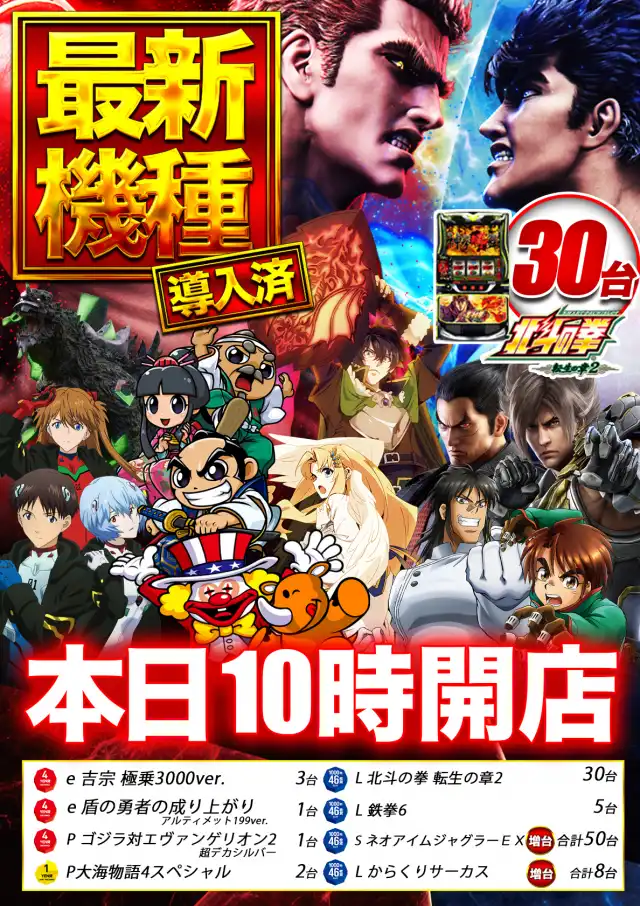 8月20日(火)マルハン鹿児島新港店8月20日、「マルハン鹿児島新港店」にて「英雄のリアル」が初実施される運びとなった。朝から足を運んだファンは同店に対して期待を寄せていたのが印象的で、同店もまたファンを笑顔にしようと気概に満ちており、盛り上…