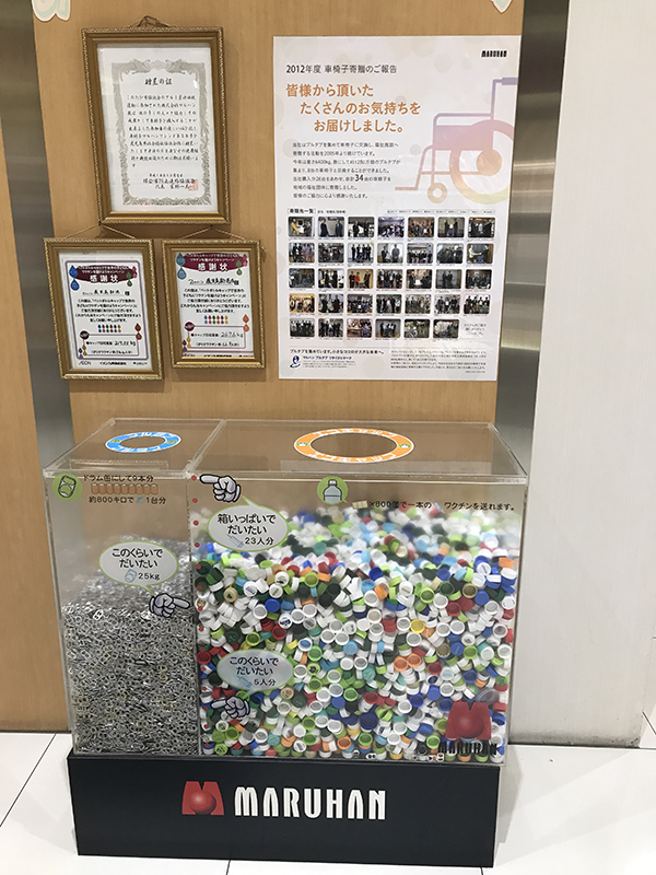 こちらのお店はプルタップや、ボトルキャップの回収にも力を入れており、車椅子を寄贈した実績も!