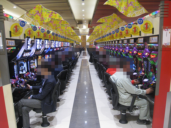 4円パチンコでも、たくさんのプレイヤーが遊技を楽しんでいた。