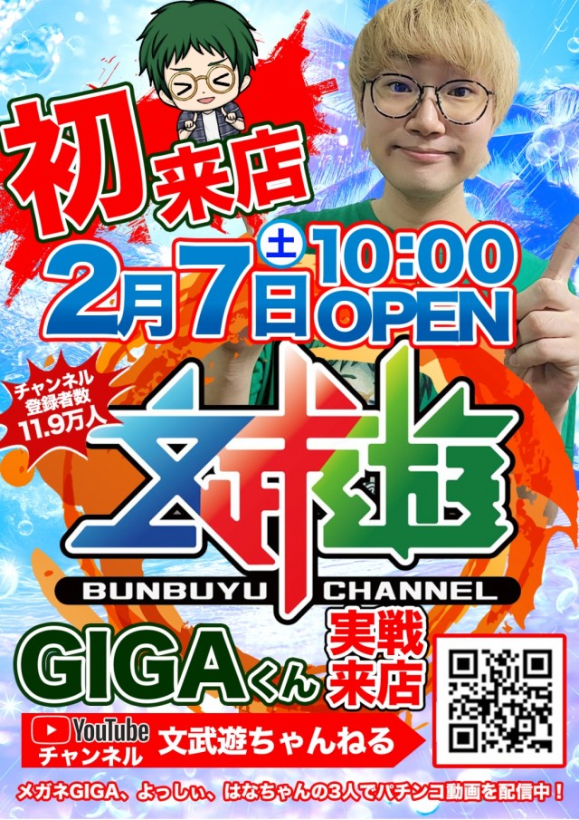 【本日】🐟文武遊チャンネルGIGAくん来店 10時開店🐟