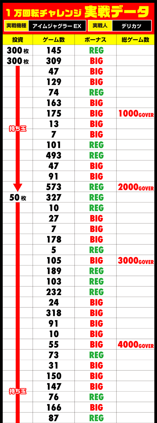 1万回転がみえはじめ、最後も必死にレバーを叩くデリカツであったが…。150Gほどをまわしきれず、チャレンジは失敗。