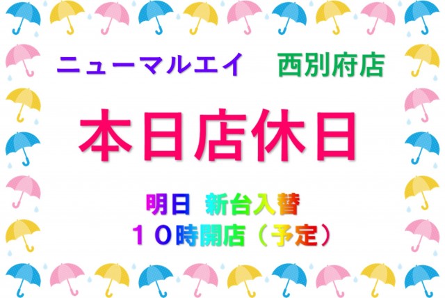 マルエイ西別府店 本日店休日 明日新台入替(予定)!!