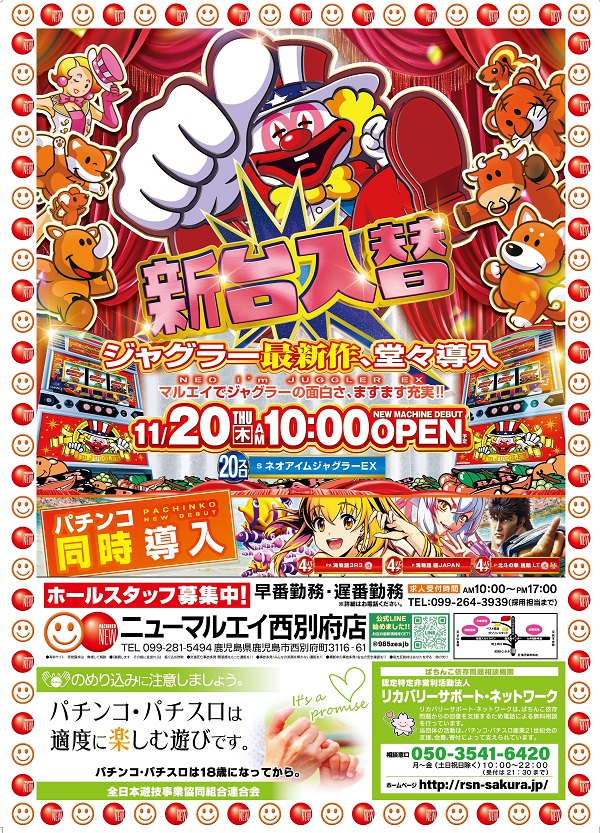 マルエイ西別府店 新台入替 本日10時開店(予定)!!