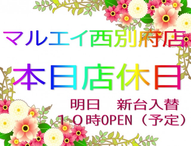 マルエイ西別府店 本日店休日 明日新台入替(予定)!!