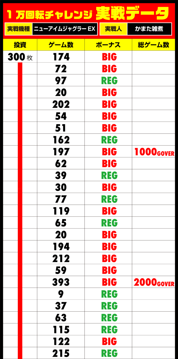最後まで一生懸命にレバーを叩いたものの、ボーナス回数が増えすぎたこともあり、チャレンジを達成することはできなかった。
