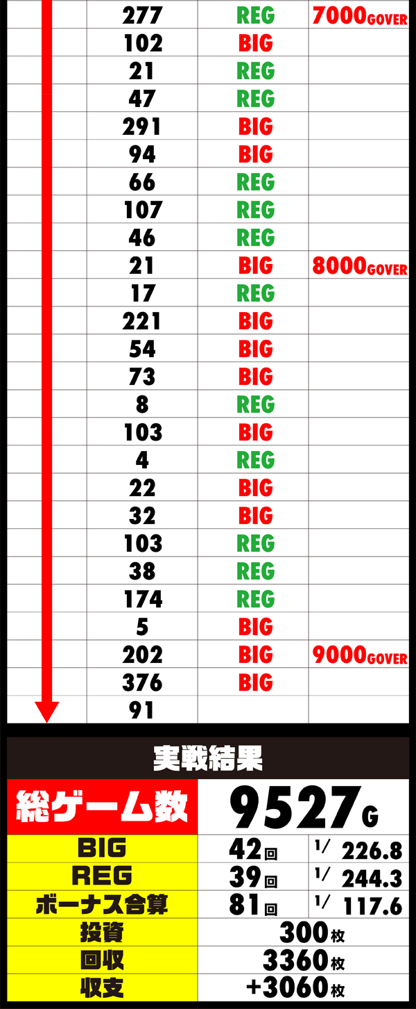 終盤までの通常時の消化ペースをみても、1万回転にとどかないと思えたが結果は…。