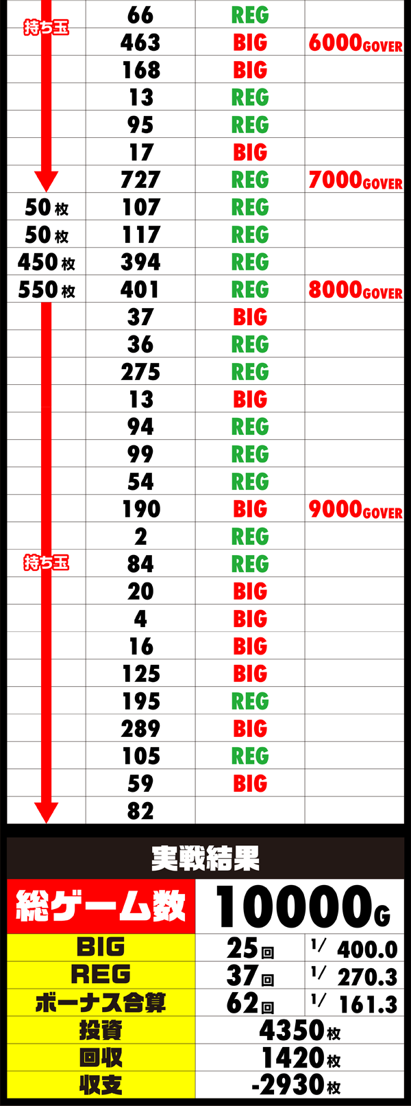 大幅なREGの先行や700G以上のハマりなど、消化スピードアップにつながる展開をしっかりと活かし、制限時間内に1万回転達成となった。