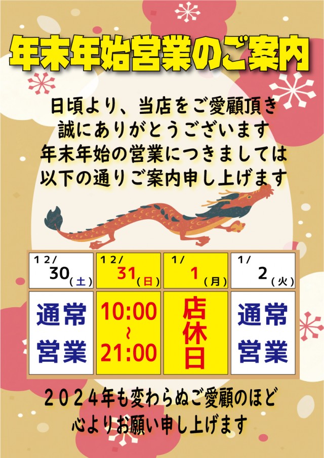 明日、10時開店!!