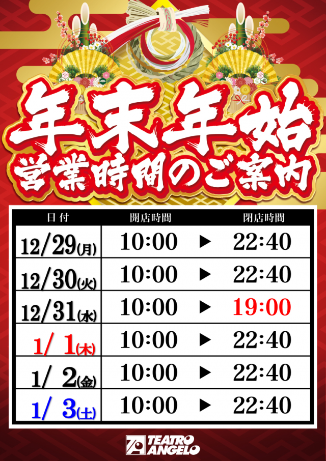テアトロ・アンジェロ・ハレルヤ店のお知らせ一覧