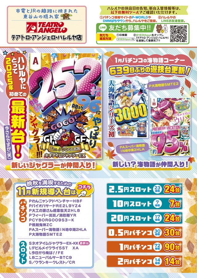 明日11月7日金曜日ハレルヤ🌟新台入替10時OPEN予定❗❗