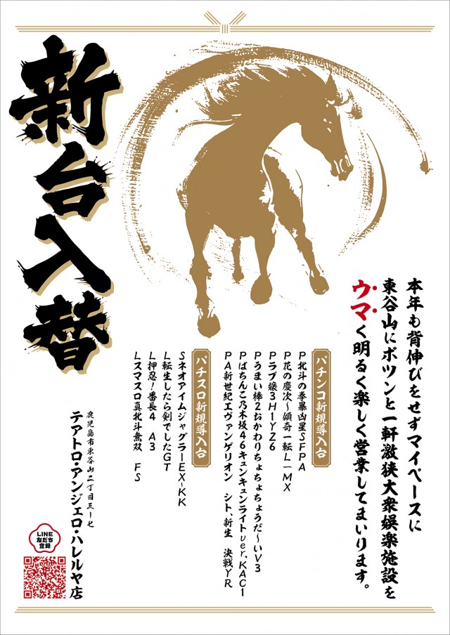 明日1月15日木曜日🌟ハレルヤは新台入替10時OPEN予定❗