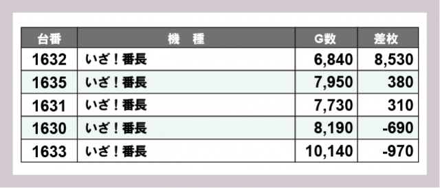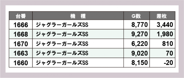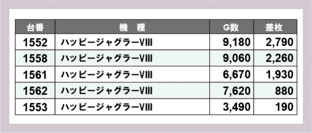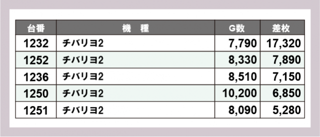 ※差枚数順に掲載しています