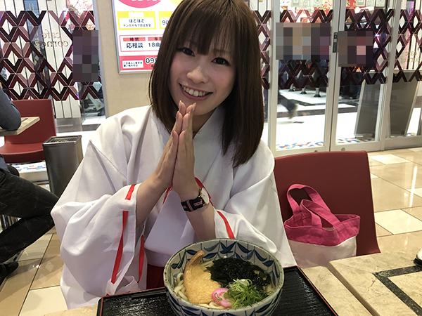 メニューが充実している食事処で結愛ちゃんも休憩。今回はうどんをいただきました♪