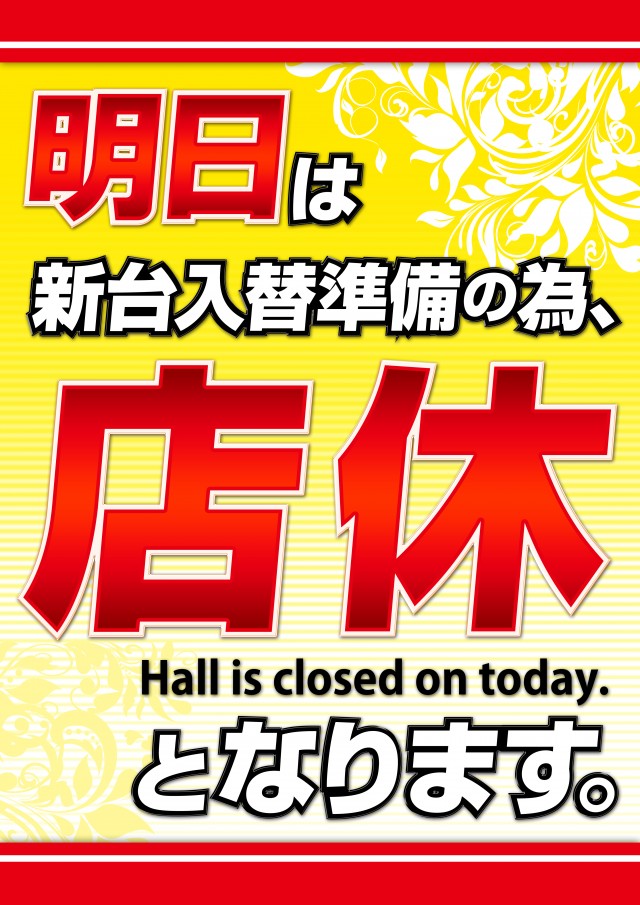 明日16日は誠に勝手ながら『店休日』とさせていただきます。