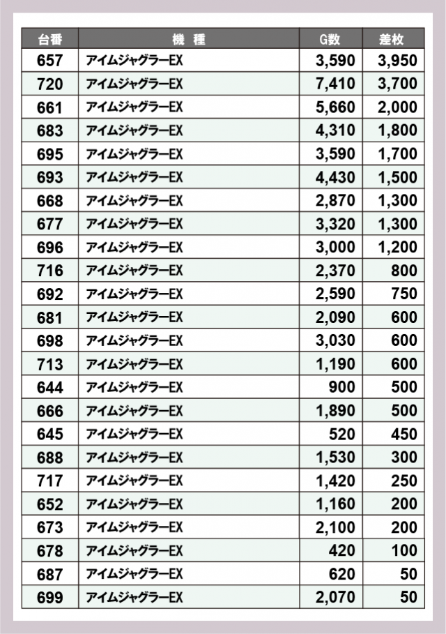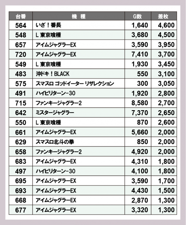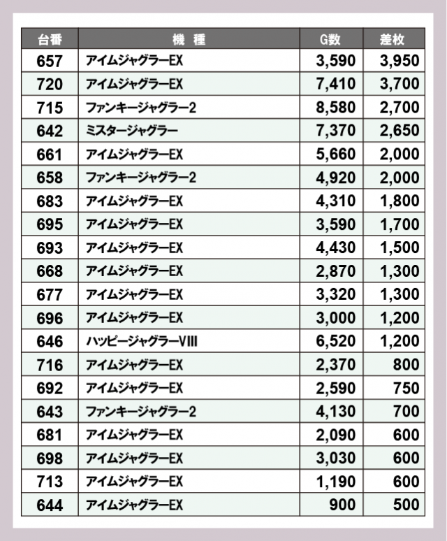 ジャグラー差枚ランキング
