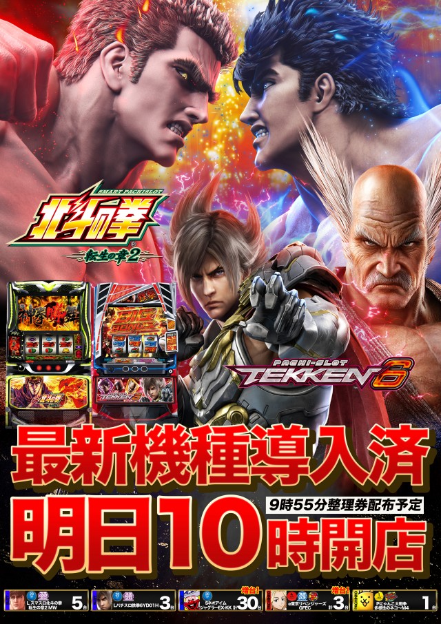 明日10時開店!話題の最新台も導入済み!お待ちしております♪