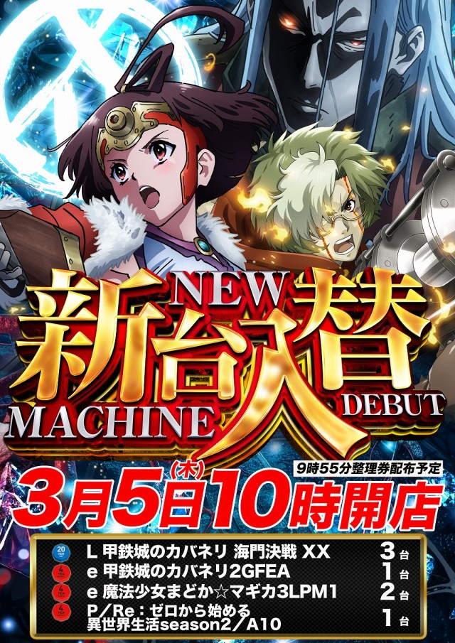 明日3月5日(木)新台入替!10時開店!