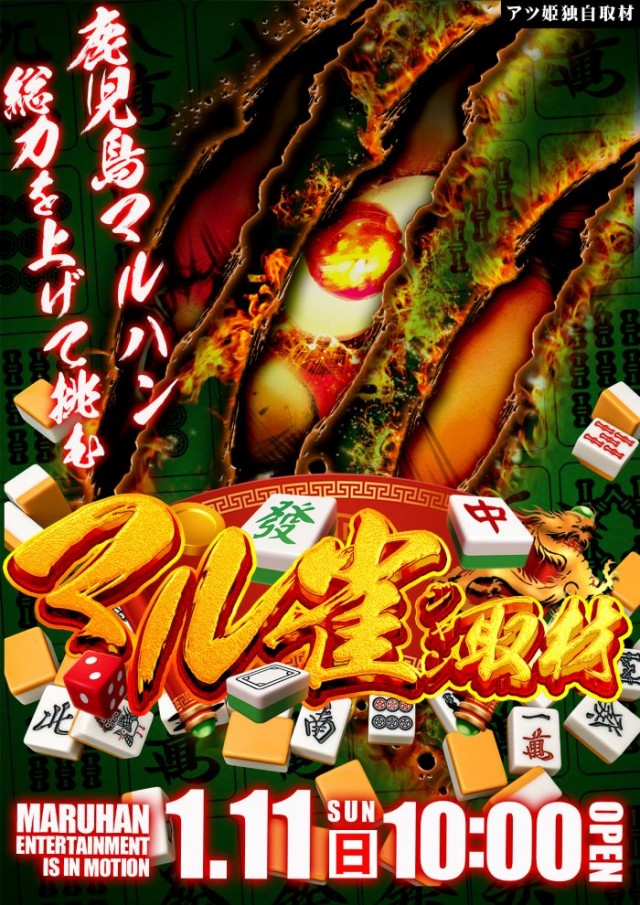 明日鹿児島マルハン全店10時開店!🀄マル雀取材🀄