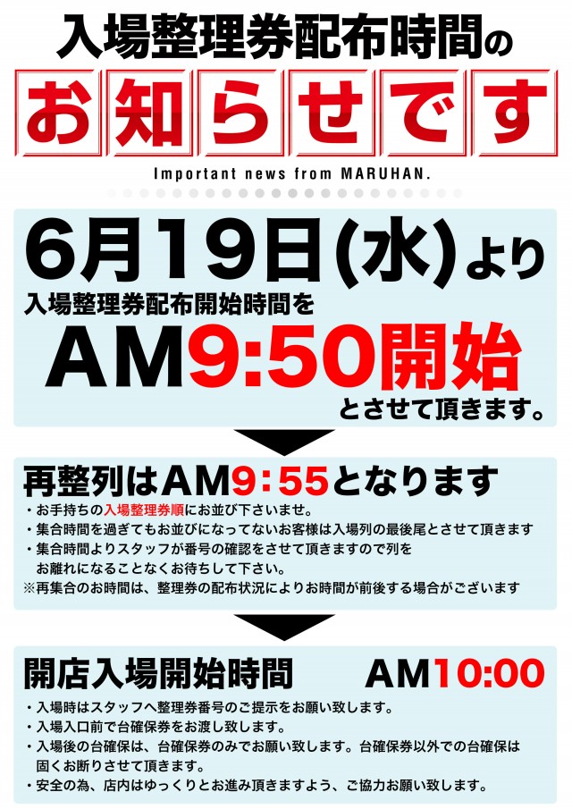 明日6月19日【水】☆新台入替!☆朝10時開店!