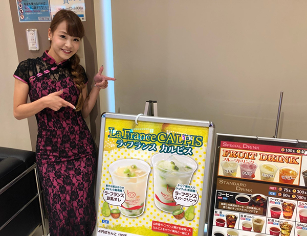 この日は、ラ・フランスを使ったドリンクが提供されており、咲ちゃんも興味津々といった様子。