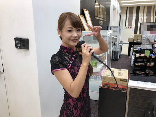 お客さまへのご挨拶でも笑顔をみせてくれた咲ちゃん。マイクを通して、皆さんに明るくメッセージをお届けできたね( ̄▽ ̄人)