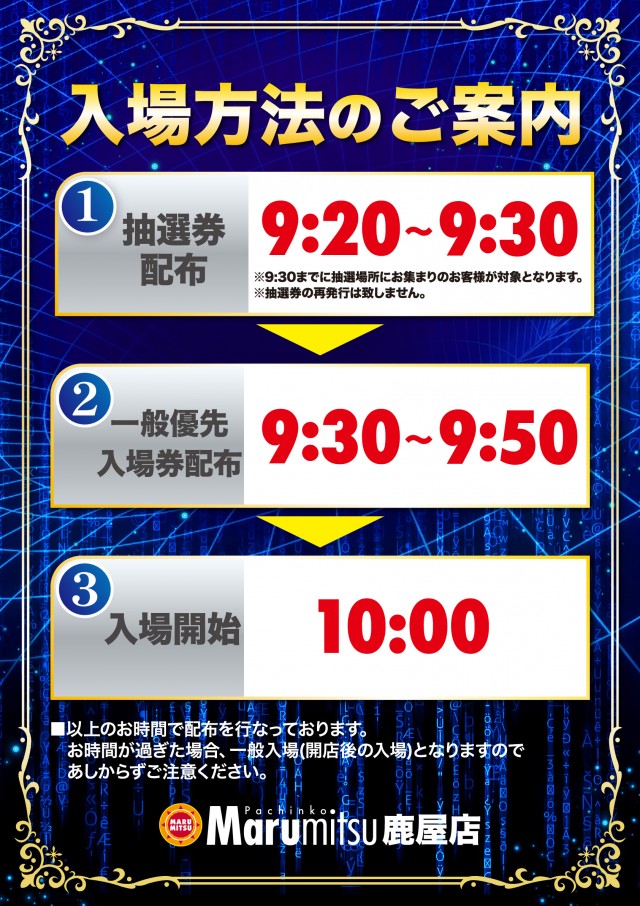 AM9:20~AM9:30入場整理券配付 AM10:00入場開始 |