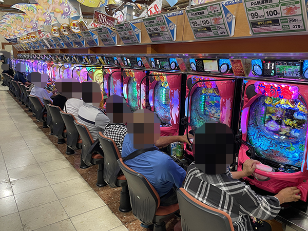 取材時は貸し玉料金を問わずプレイヤーでにぎわっており、各シマとも明るい雰囲気を発していた。