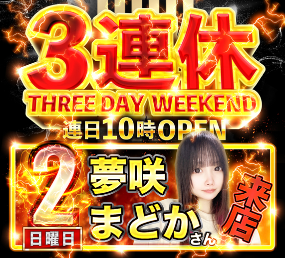 3連休!明日は夢咲まどかさん来店❤️スロット取材も🔥