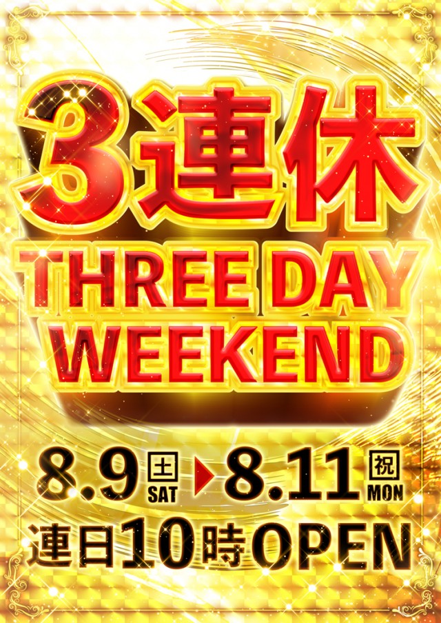 明日8月8日【金】10時開店!さらに!!!週末3連休は!!!