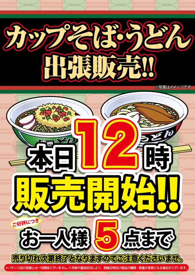 明日も【週末展開】取材!カップそば・うどん出張販売!!