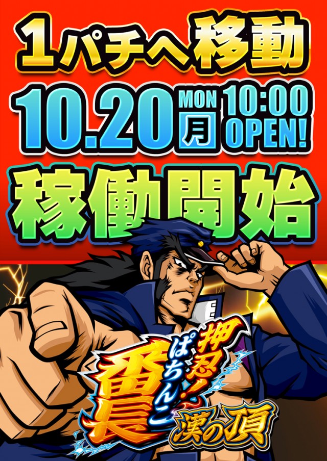 明日20日【月】e押忍!番長が1パチへ移動!稼働開始!