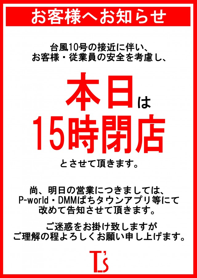 T’s垂水店のお知らせ一覧