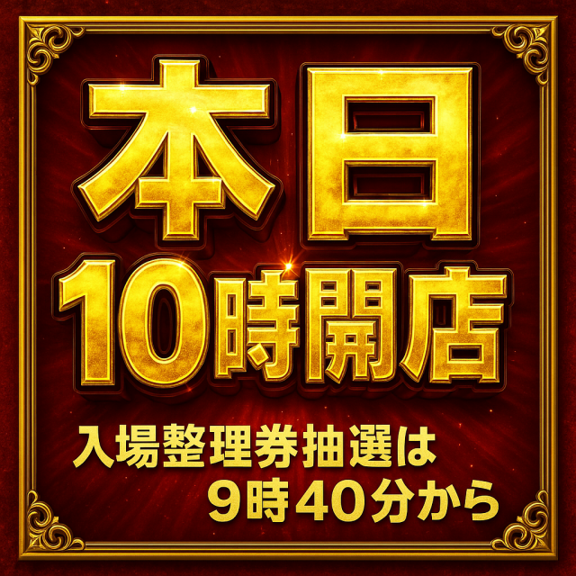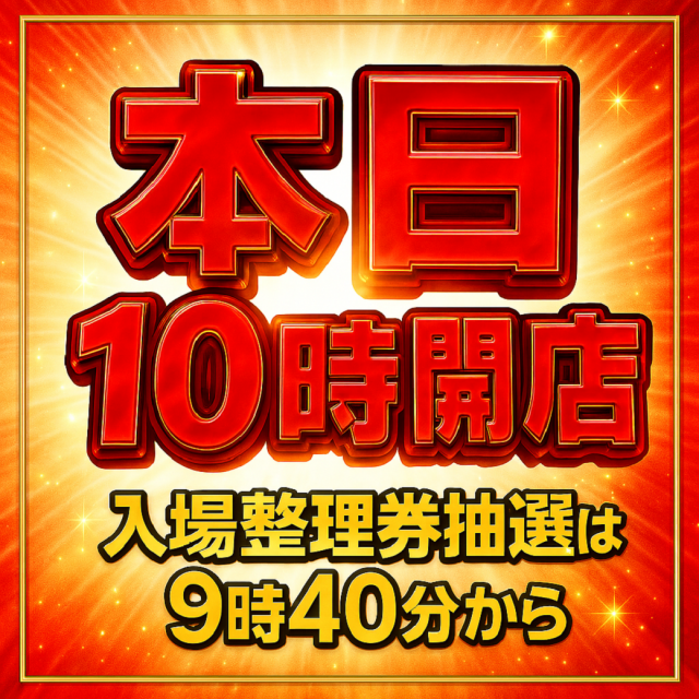 【本日】朝10時OPEN!朝の入場が抽選になります