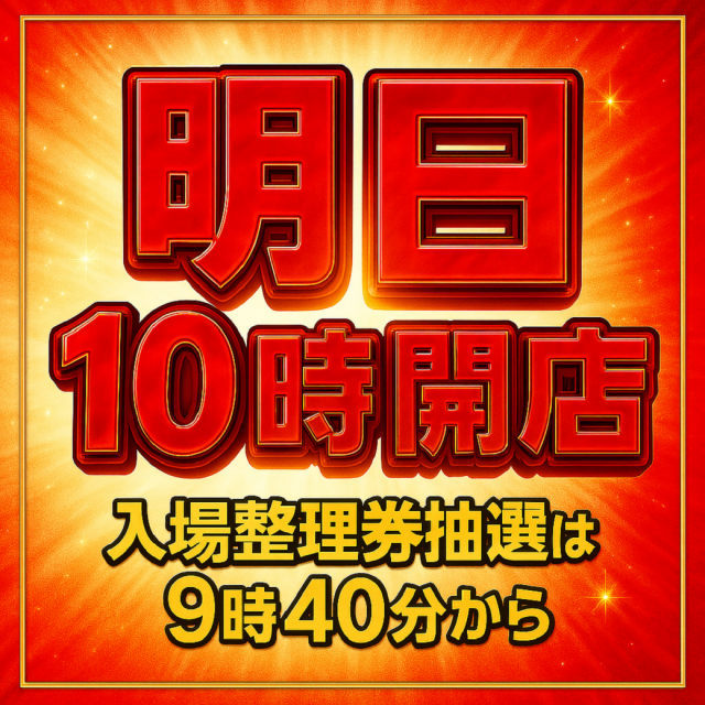 【明日】朝10時OPEN!朝の入場が抽選になります