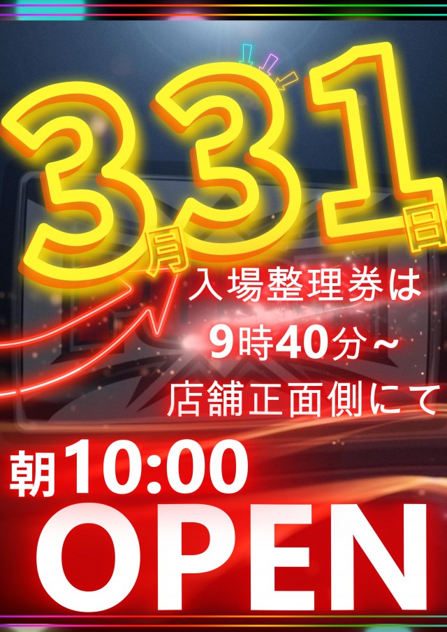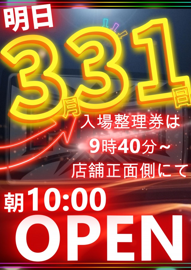 【明日3月31日朝10時OPEN!】朝入場が抽選になります