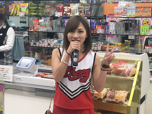 元気のいいマイクパフォーマンスで、お客さまの注目を集めるゆうみちゃん。とっても可愛くアナウンスできたね!