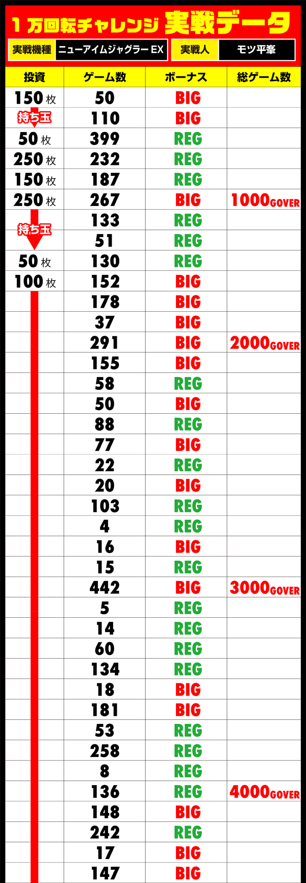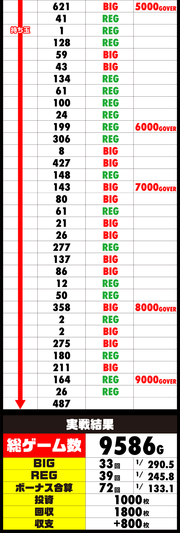 まさに高設定といえるキレイな軌道でグラフが伸びていき、ボーナス消化に時間をとられたことが失敗の大きな要因となったようだ。