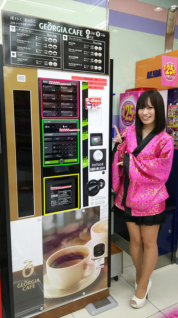 結愛ちゃんイチオシは、挽きたて淹れたての本格コーヒーを味わえる自動販売機。