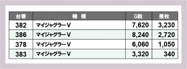 ※差枚数順に掲載しています