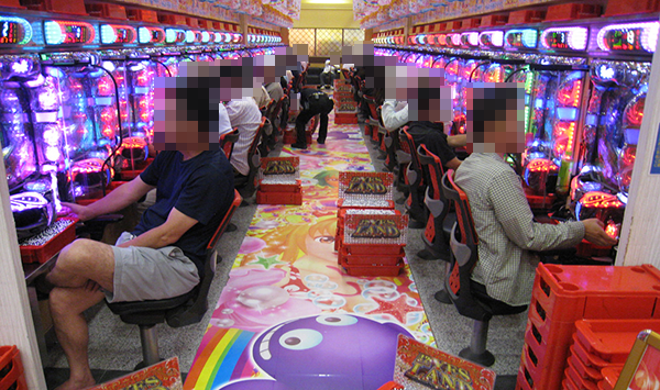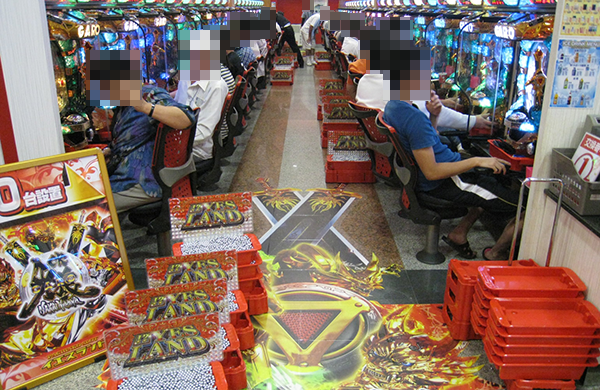 14時頃の4円パチンコのなかで、もっとも活気づいていたのは「CR牙狼 魔戒ノ花」。機種の特徴を活かしているような姿が多く、華やかな光景もみられた。